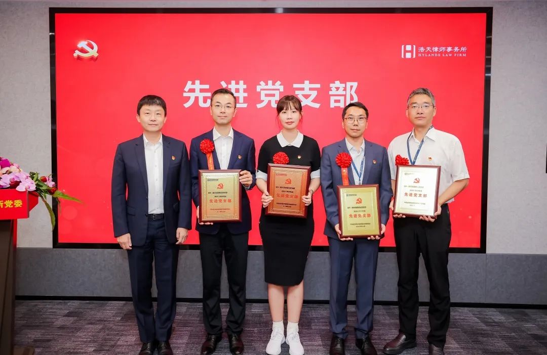 徐羽同志充分肯定了浩天党组织建设和党员队伍建设取得的成效。他指出,浩天党委成立以来,以加强党委班子自身建设、加强党内基本制度建设、加强党支部政治功能和组织力建设、加强党员党性教育为重要切入点,党建机制高效顺畅,党的制度大力夯实,党的组织有效覆盖。实现了党建引领下各方面工作的有效提升。2023年到2024年,律所规模不断扩展、结构不断优化、业绩稳中有进。今年5月份,律所首次颁布了五年度《社会责任报告》,首次编印了《浩天党委党内制度汇编》。在党建工作上,逐步形成了“引领靠班子、管理靠制度、公益强赋能、首都带地方”的浩天特色党建 。广大党员在业务领域、行业领域、“万民党员律师助社区,人民满意我先行”等法律公益服务方面法义承载、不忘初心,行业美誉度、专业知名度、群众满意度不断提升。党员律师已成为律师队伍的一支重要骨干力量,为浩天律所发展做出了重要贡献。徐羽同志代表党委对受到表彰的个人和组织表示衷心祝贺!对奋战在律师一线的全体党员致以衷心感谢!