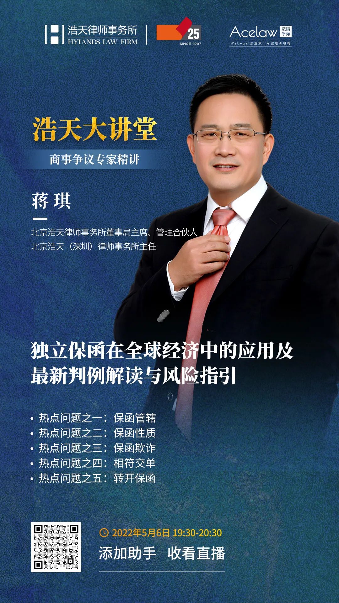 直播邀请 | 浩天大讲堂——独立保函在全球经济中的应用及最新判例解读与风险指引