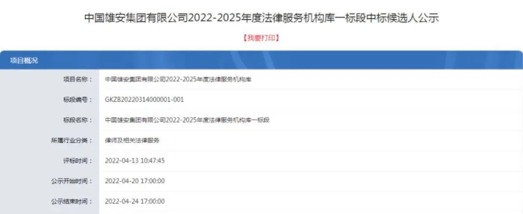 浩天成功中标中国雄安集团有限公司法律服务机构入库项目