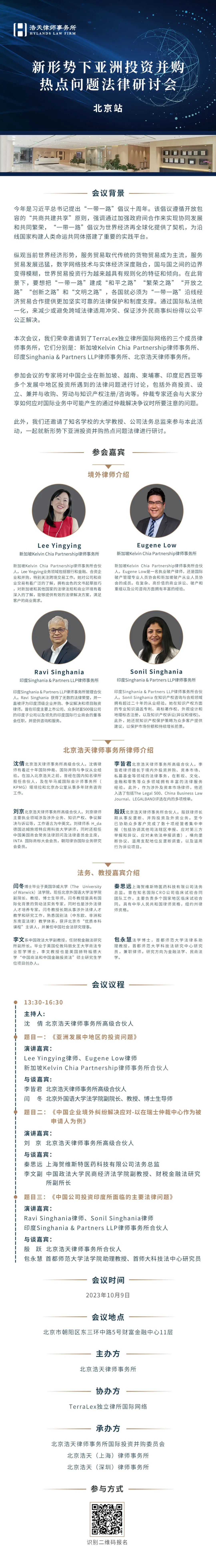 浩天论坛 | 新形势下亚洲投资并购热点问题法律研讨会(北京站)