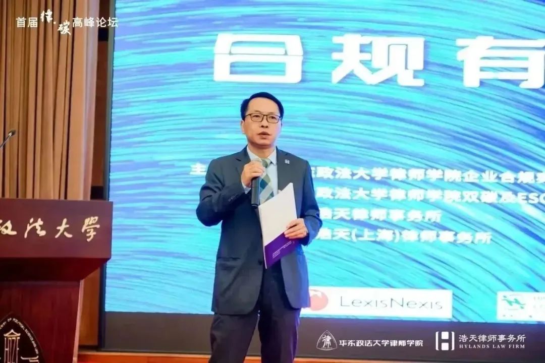 2023年10月28日,首届律·碳高峰论坛在华东政法大学长宁校区交谊楼成功举办。本次高峰论坛由华东政法大学律师学院企业合规实务研究中心、华东政法大学律师学院双碳及ESG实务研究中心、北京浩天律师事务所、北京浩天(上海)律师事务所、北京浩天律师事务所全国合规与政府监管专业委员会、北京浩天律师事务所全国双碳及 ESG 法律行业委员会联合主办,旨在推动双碳、ESG和企业合规领域的探讨与合作,为构建低碳经济、推动可持续发展贡献力量。
