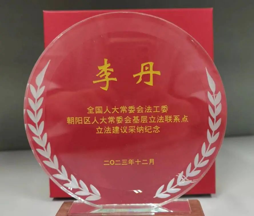 该立法建议被纳入《十四届全国人大常委会公布的未来五年立法规划》(“第一类项目:条件比较成熟、任期内拟提请审议的法律草案”)。该机构为李丹律师颁发了国家立法采纳的荣誉证书和纪念奖牌,同时该立法建议还被纳入全国人大常委会法工委朝阳区人大常委会基层立法联系点立法意见建议光荣册。