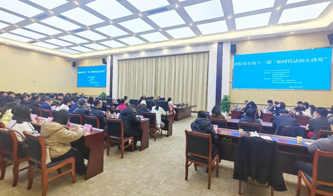 2023年12月27日,为全面贯彻落实党的二十大精神,全面落实《中共贵州省委 贵州省人民政府关于深化贵安新区管理制度改革的意见》文件精神,聚焦高质量发展这个首要任务,帮助提升企业的法律风险意识,有效维护企业合法权益,助推贵阳贵安经济高质量发展,更好服务保障“强省会”行动,贵阳市委依法治市办在贵安新区举办第十二期贵阳贵安“新时代法治大讲堂”。