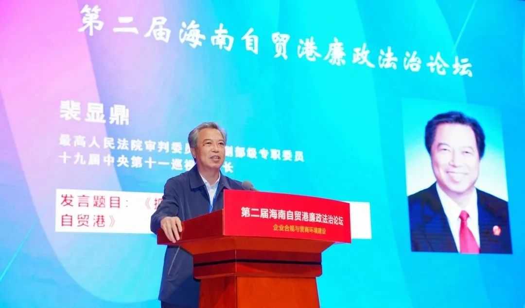 最高人民法院审判委员会原副部级专职委员、十九届中央第十一巡视组组长裴显鼎在以《抓廉政 强法治 助建中国特色海南自贸港》为主题的发言中强调,廉政既是一种与贪腐直接对立的政治文明,也是中国共产党孜孜以求的理想目标,狠抓廉政,关键是要坚持一体推进不敢腐、不能腐、不想腐的基本方针;廉政和法治并非互不相干、各自独立的两个领域,而是相辅相成、相得益彰的一对范畴。海南自贸港是中国特色自贸港,清廉一定是自贸港建设的应有之义,只有在法治的轨道上才能真正稳步推进、行稳致远。