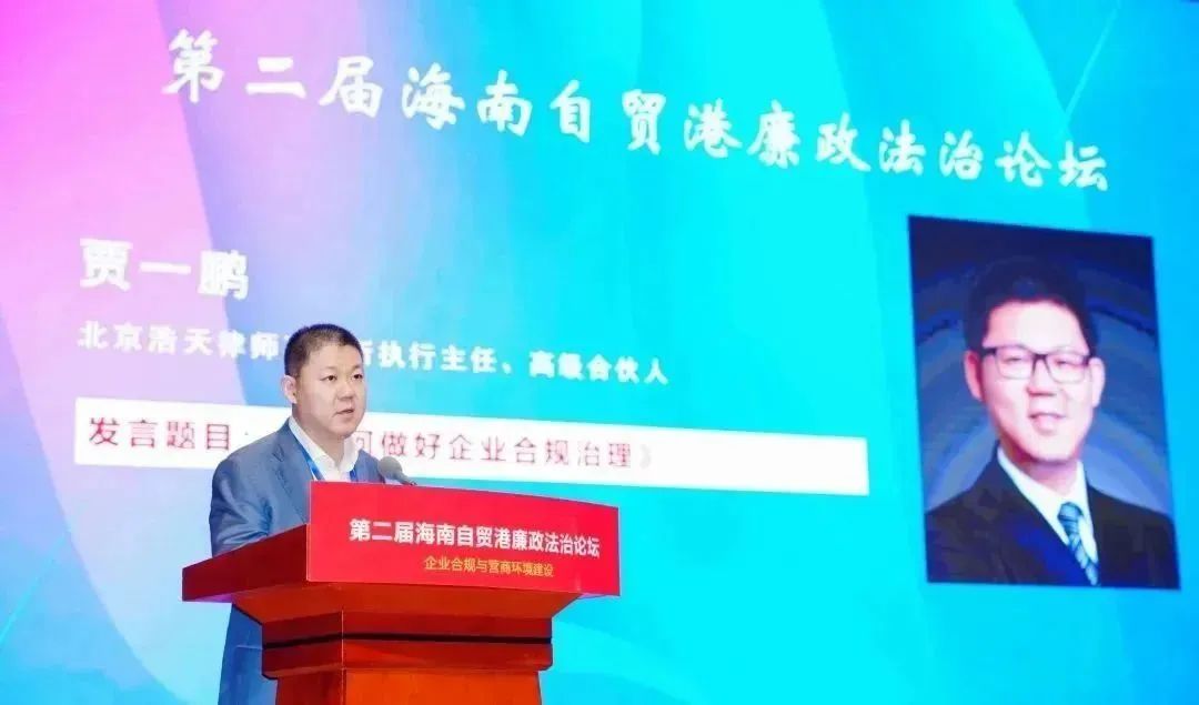 浩天执行主任、高级合伙人贾一鹏律师在“第二届海南自贸港廉政法治论坛”上做主旨发言