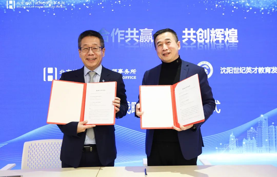 合作共赢,共创辉煌。北京浩天(沈阳)律师事务所与沈阳世纪英才教育发展有限公司签署战略合作协议,联手共建企业管理综合服务生态系统,提升企业服务效果、助力东北振兴,并打造双赢、可持续发展的战略合作关系。