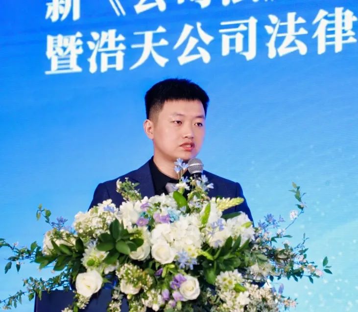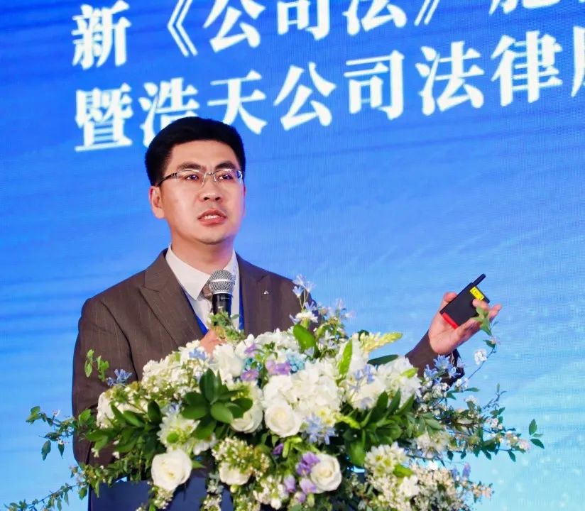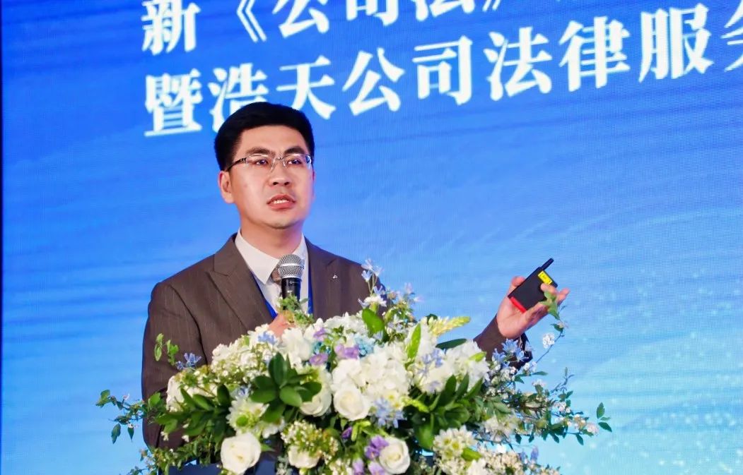 浩天全国公司业务专业委员会牵头合伙人、浩天上海办公室高级合伙人王悦建律师以“新公司法下的公司控制与股东权利保护”为主题,从控制与公司控制、新法内容和公司要素变动向与会嘉宾介绍了新《公司法》背景下的公司控制与股东权利保护的发展趋向与实务应对。