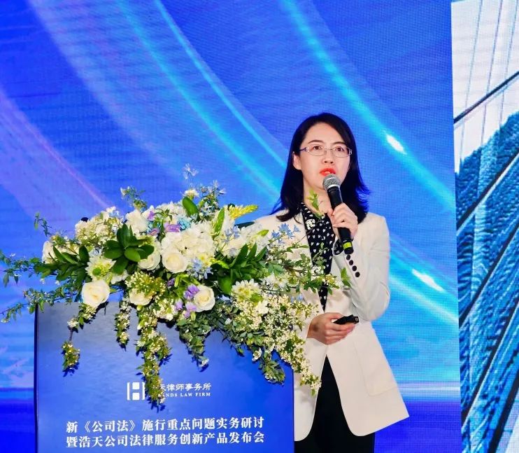 论坛接近尾声,浩天青岛办公室执行主任蔡顺香律师为论坛致闭幕词。蔡顺香律师首先对所有莅临论坛的嘉宾、同仁致以感谢,并指出,新《公司法》背景下,公司类法律服务产品的发布标志着,浩天公司业务的产品化之路越发深入,浩天也期待在未来,发布更多具有“以客户为中心”属性的法律产品,为法治建设和法律服务行业繁荣发展,作出更大贡献。