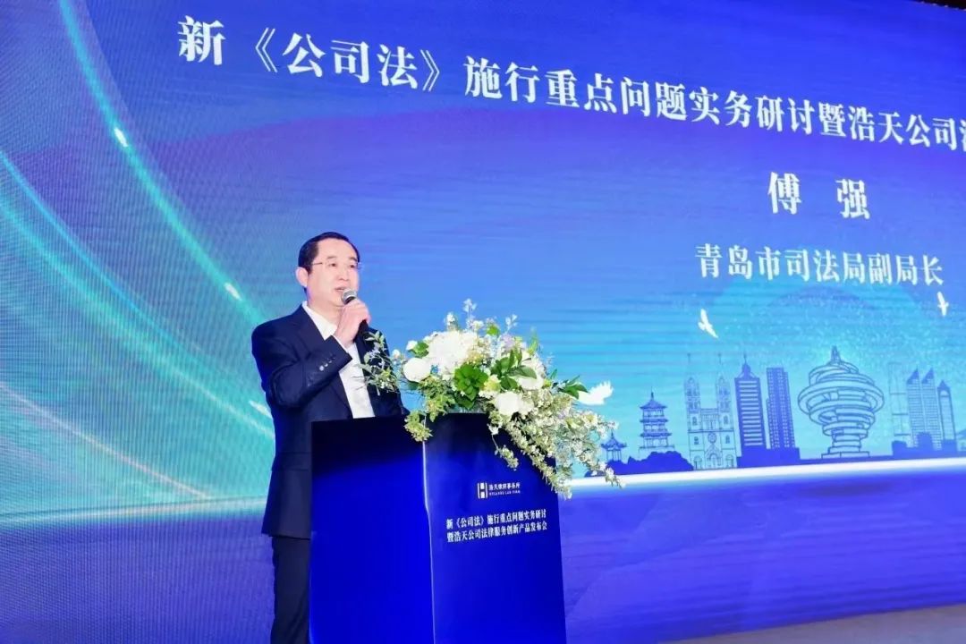 论坛开幕之际,青岛市司法局副局长傅强、青岛市律师协会副会长王宇、浩天全国董事局主席蒋琪律师、北京浩天(青岛)律师事务所负责人黄纯阳律师、浩天全国公司业务专业委员会牵头合伙人张继志律师为大会做了开幕致辞,并预祝大会成功举办。