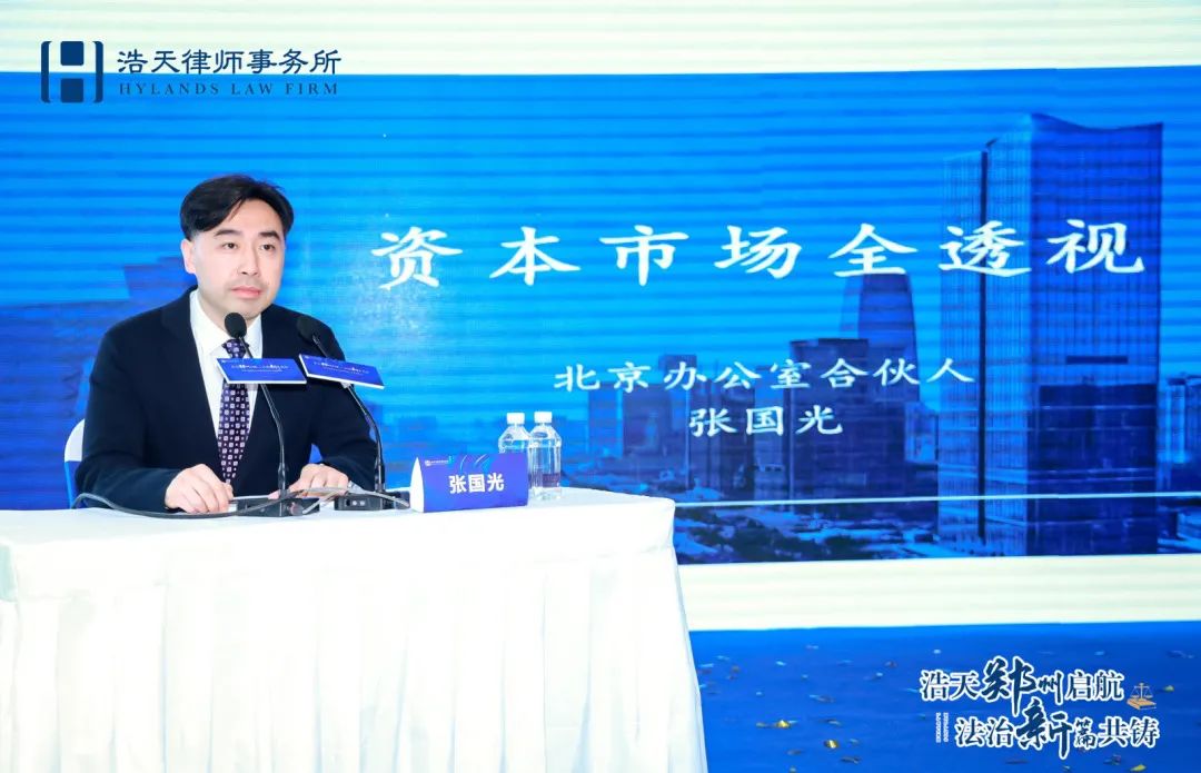 揭牌仪式后,浩天郑州办公室高级合伙人、本次法律讲坛主持人马华杰律师宣布浩天北京办公室高级合伙人张国光律师为各位嘉宾带来以“资本市场全透视”为主题的法律讲坛。