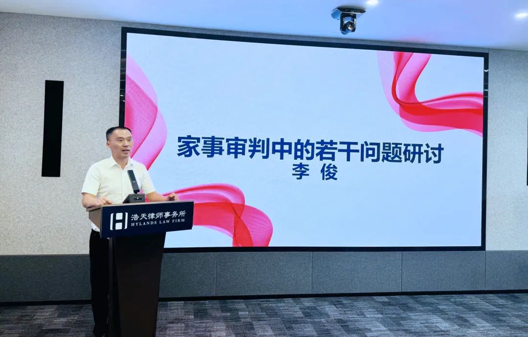 浩天重庆办公室律师李俊副教授发表了《家事审判中的若干问题研讨》主题演讲,李教授从可否仅依据人身安全保护令、家庭暴力告诫书认定存在《民法典》第一千零七十九条第二项规定“实施家庭暴力”可判离婚的情形讲起,对家事审判中的若干问题进行了探讨。嘉宾们知无不言、言无不尽,他们的精彩分享将活动推向高潮。