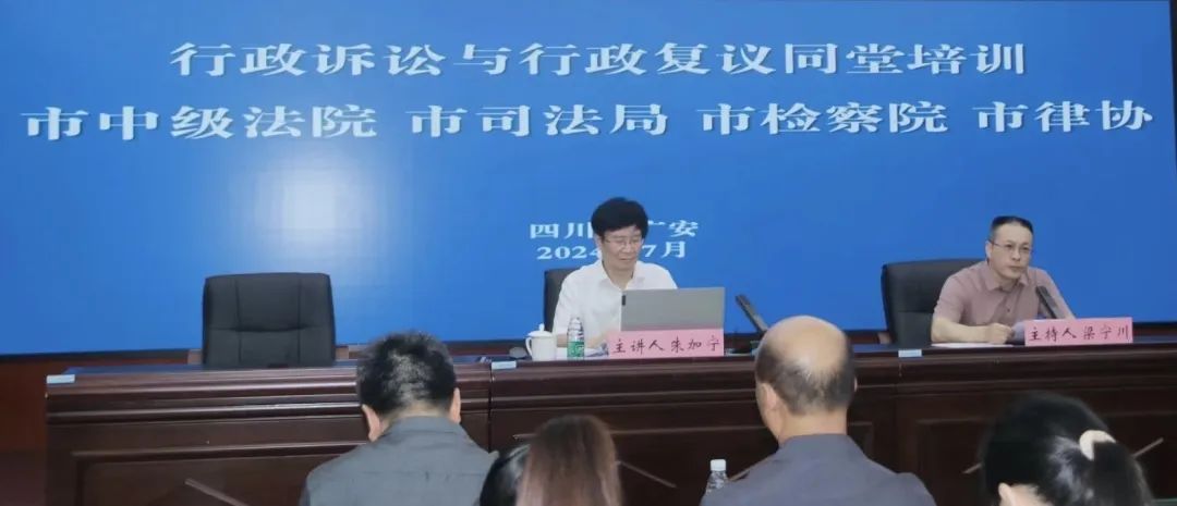 2024年7月25日上午,朱加宁律师应邀在四川省广安市为中级人民法院、司法局、检察院、律师协会讲授《行政协议订立履行及争议解决的实践和思考》。法检司律和其他部分行政执法部门共140余人参加了本次同堂培训。