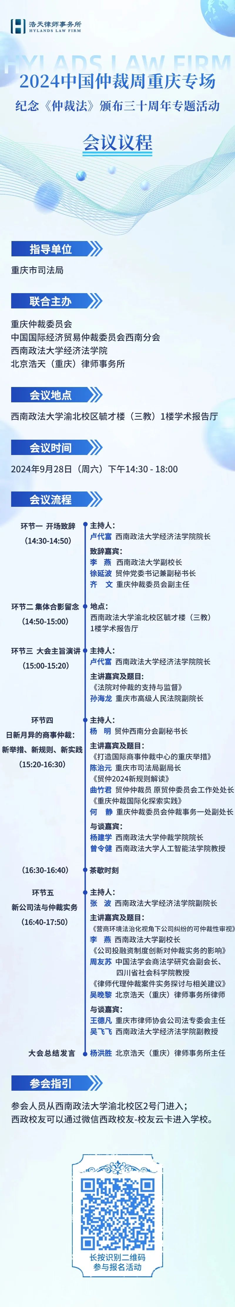 浩天论坛 | 2024中国仲裁周重庆专场——纪念《仲裁法》颁布三十周年专题活动