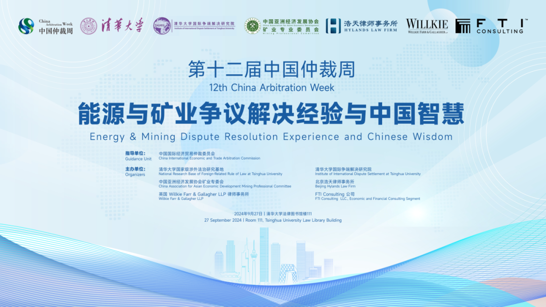 2024年9月27日下午,由中国国际经济贸易仲裁委员会作为指导单位,清华大学国家级涉外法治研究基地 、清华大学国际争端解决研究院、中国亚洲经济发展协会矿业专委会、北京浩天律师事务所、Willkie Farr & Gallagher LLP 律师事务所、FTI Consulting公司共同主办的第十二届中国仲裁周“能源与矿业争议解决经验与中国智慧”论坛在清华大学成功举办,共同探讨能源与矿业领域的法律问题。