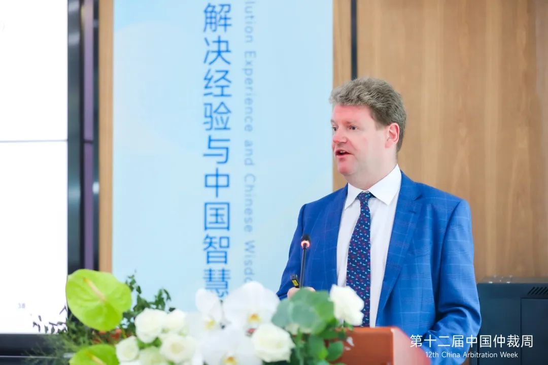 开幕致辞环节,中国国际经济贸易仲裁委员会监督协调处处长魏子平、资深国际仲裁专家、香港前律政司司长、资深大律师、太平绅士、大紫荆勋章和金紫荆星章获得者郑若骅,以及中国亚洲经济发展协会矿业专业委员会常务副秘书长温建柯先后致辞。