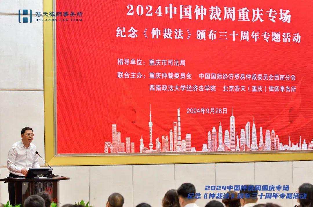 北京浩天(重庆)律师事务所主任杨洪胜在作总结发言时表示,此次活动的成功举办不仅为仲裁领域的理论研究和实践探索提供了宝贵的经验,也为中国仲裁的国际化发展指明了方向。他强调,随着仲裁法的不断完善和全球仲裁规则的接轨,中国仲裁将继续在国际仲裁领域发挥重要作用,同时北京浩天(重庆)律师事务所也将继续发挥国际商事仲裁中的优势,竭诚为海内外客户提供优质、专业、高效的法律服务。