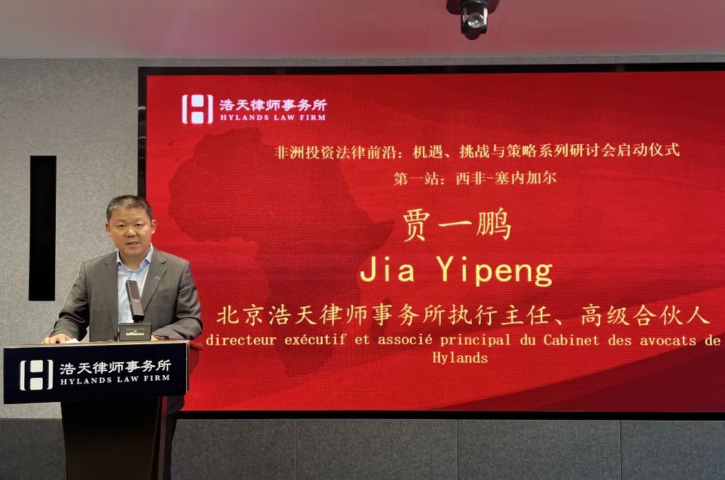 启动会首先由浩天北京办公室执行主任、高级合伙人贾一鹏律师致辞。他对各位嘉宾的到来表示热烈欢迎,并指出:“非洲市场正以其独特的魅力和潜力,吸引着全球投资者的目光。我们希望通过系列研讨会,为有意进军非洲市场的中国企业提供一个专业、高效的交流平台,助力解决中国企业在非洲地区投资经营中所面临的法律问题。”
