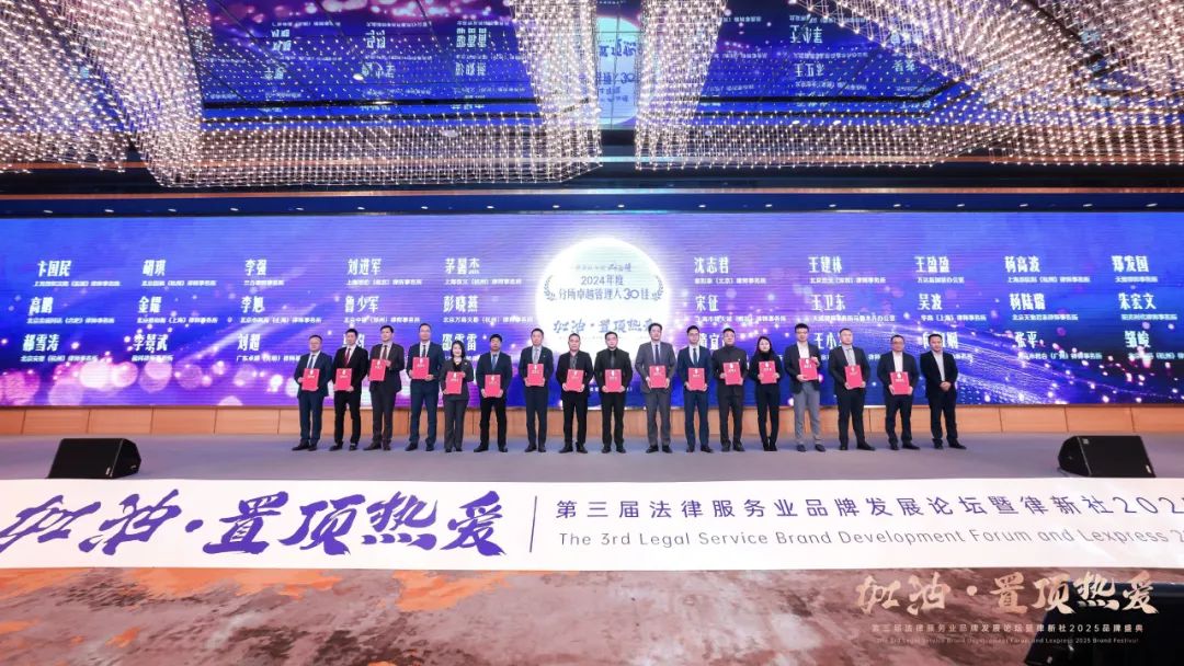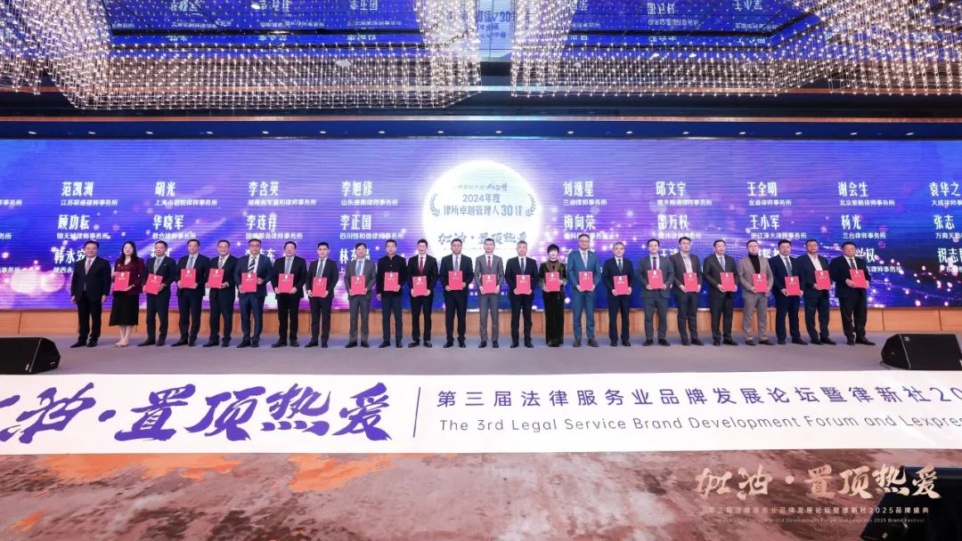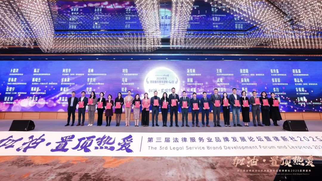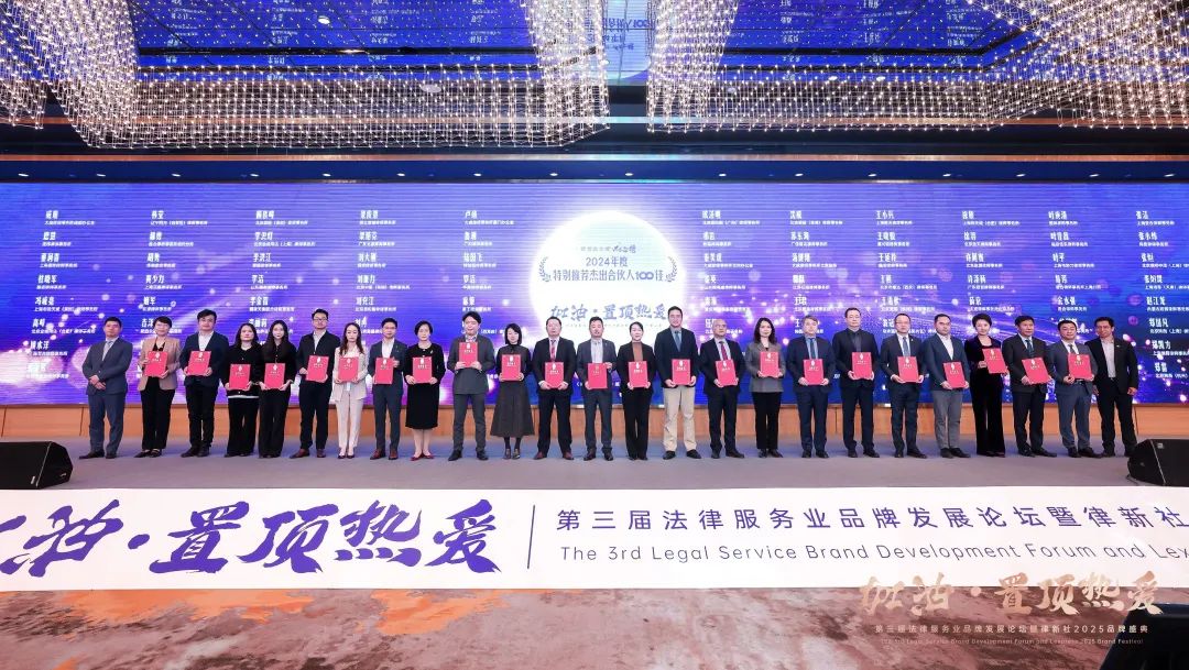 2025年2月22日,由律新社主办的“加油·置顶热爱”第三届法律服务业品牌发展论坛暨律新社2025品牌盛典于上海隆重举办,并现场发布了《律所卓越品牌影响力指南(2024)》、“律新社2024年度风云榜”、“律新社2024年度标杆案例”。