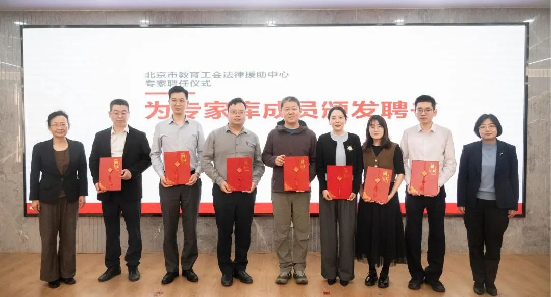 2025年4月15日下午,北京市教育工会法律援助中心专家咨询库聘任仪式在中国政法大学海淀校区召开。北京市教育工会主席宋丽静、副主席张磊,中国政法大学副校长王敏、工会常务副主席孟庆超及多位校内专家库成员代表、志愿者团队代表出席本次聘任仪式。北京浩天律师事务所执行主任贾一鹏律师、合伙人刘凌律师、合伙人张碧飞律师、合伙人贾站格律师、合伙人侯文霞律师、律师常康爽以及律师秦臻作为首批入选专家库的社会律师出席了聘任仪式。