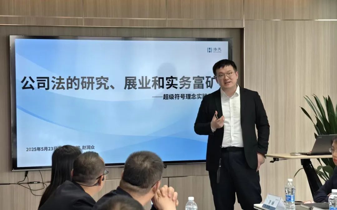 浩天研究院院长赵润众律师首先作《公司法的研究、展业与实务富矿——超级符号理念实践倡议》主题分享,从十大高频公司业务纠纷案由出发,分析公司法中被反复挖掘和研读的议题以及如何用客户的视角来看公司的高发期,提出超级符号战略,瞄准新公司法司法解释先谋后动、提前布局,争取在公司法新规中做到行业绝对头部。