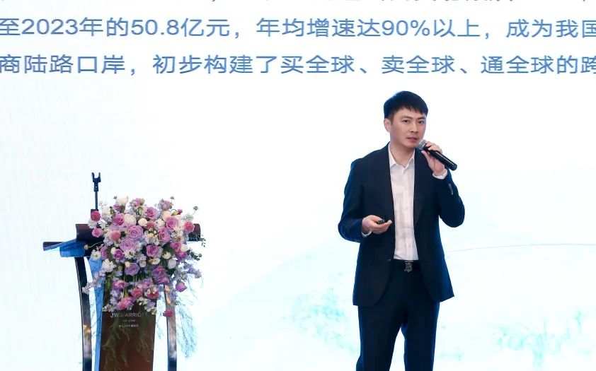 珲春市口岸管理服务中心主任孙居峰讲解了珲春口岸优势及跨境电商等外贸发展政策;并介绍了珲春建立的对俄唯一陆路“白关”口岸和跨境电商海关监管9610“珲春标准”,使珲春实现跨境电商“9610”、“1239”、“1210”、“9710”、“9810”进出口的全模式畅通。