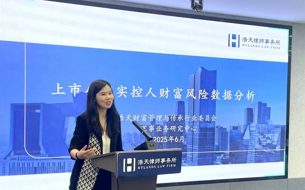 随后,浩天家事研究中心张莹主任对《上市公司实控人财富风险数据分析》重磅发布。报告团队通过对过往数据的详实数据、真实案例梳理,从技术性离婚、实控人人自由受限、再婚家庭权力分配不均、跨境资产追索、CRS等目前高净值客户群体关注的热点问题出发,揭示上市公司实控人家族财富的潜在风险、传承断层引发的企业治理危机等,为律师识别客户需求、提前介入服务提供数据支撑。