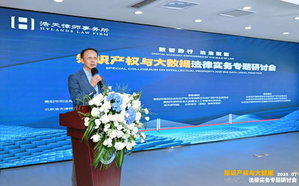 贵州作为国家大数据综合试验区核心枢纽,在数据要素市场化与知识产权创新领域的法律服务需求日益迫切。为此,在贵阳市司法局、贵阳市知识产权保护中心的指导下,贵阳市律师协会与北京浩天律师事务所联合举办了“知识产权与大数据法律实务专题研讨会”。本次研讨会于2025年7月17日、18日在贵阳举行,研讨会以“数智黔行 法治赋能”为主题,汇聚了省内外法律专家、学者及实务从业者,聚焦数据合规、知识产权保护、人工智能与法律融合等前沿议题,开展深度研讨与交流,为贵州数字经济与知识产权领域法治建设注入新动能。研讨会紧扣地方发展实际,共设置“法治大讲堂”和专题研讨两个交流环节。