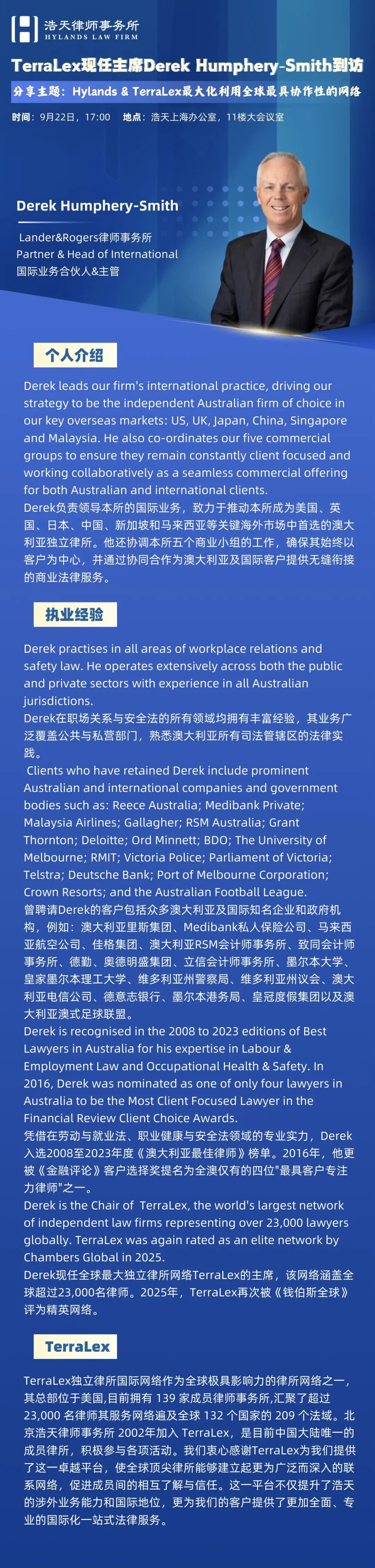 TerraLex现任主席-澳大利亚Lander&Rogers律所合伙人到访浩天上海办公室