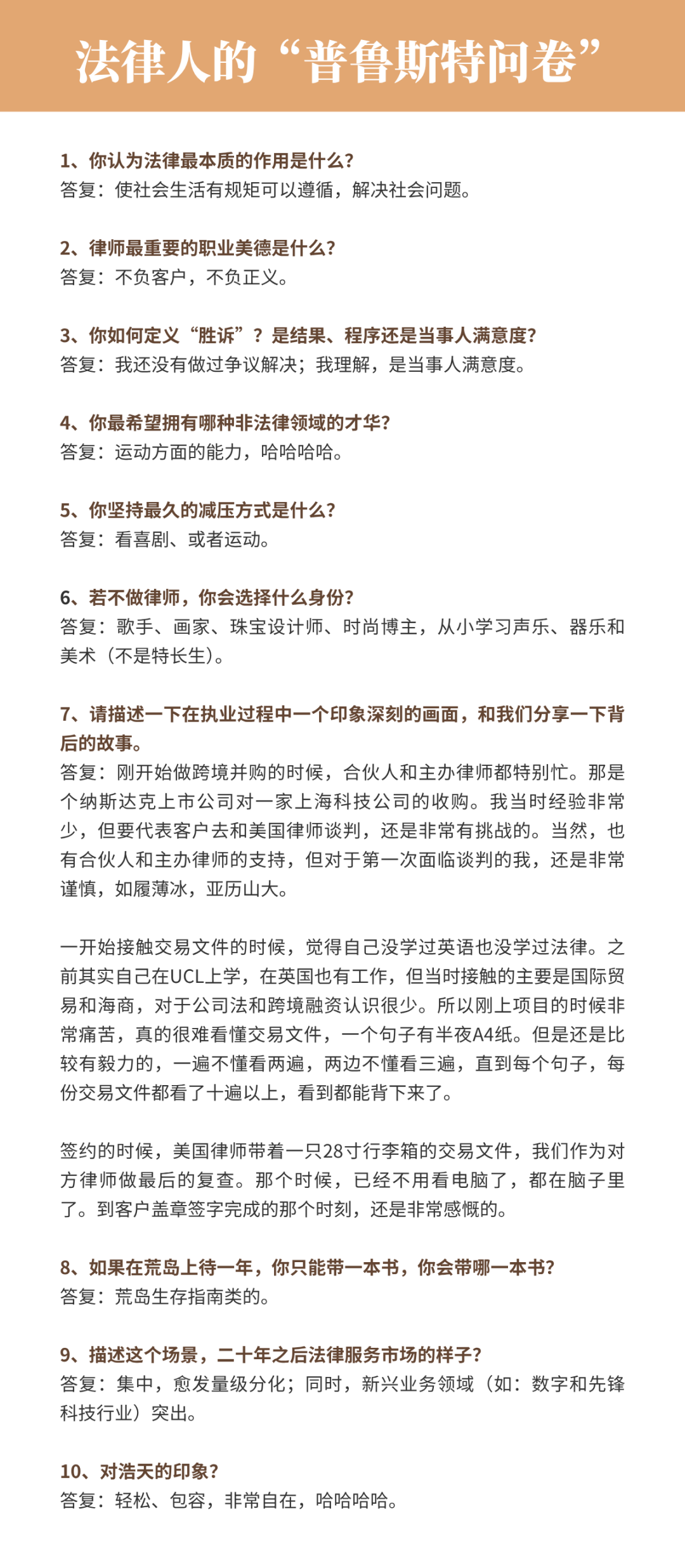 浩天森林是浩天律师事务所推出的系列专栏,最打动人的是故事,我们希望通过“年轮访谈”“我的使用说明书”“我的生活”“法律人的普鲁斯特问卷”的多元化立体式呈现新浩天人的成长故事,展示新浩天人“存浩然之志,立天地之间”的风貌与风采。