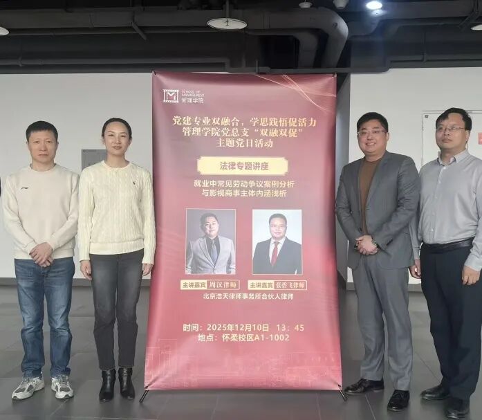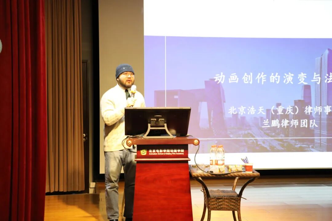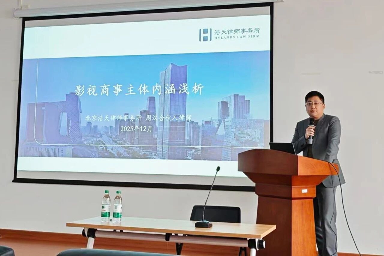 2025 年 12 月 9 日、10日下午,分别由北京电影学院动画学院举办的 “从创作到商业化的法律合规指南”法律专题讲座及北京电影学院管理学院举办的“双融双促主题党日活动”法律专题讲座,在北京电影学院怀柔校区A楼成功开展,北京电影学院动画学院副院长黄勇、韩笑老师及北京电影学院管理学院党总支书记夏卫国、刘磊老师,北京市怀柔区文化产业发展促进中心副主任赵曌分别出席并参与了前述专题讲座,北京浩天律师事务所周汉律师、张碧飞律师、王沫律师,北京浩天(重庆)律师事务所兰鹏律师,浩天知识产权代理事务所专利代理人宋菲受邀出席并分别发表了专题演讲。