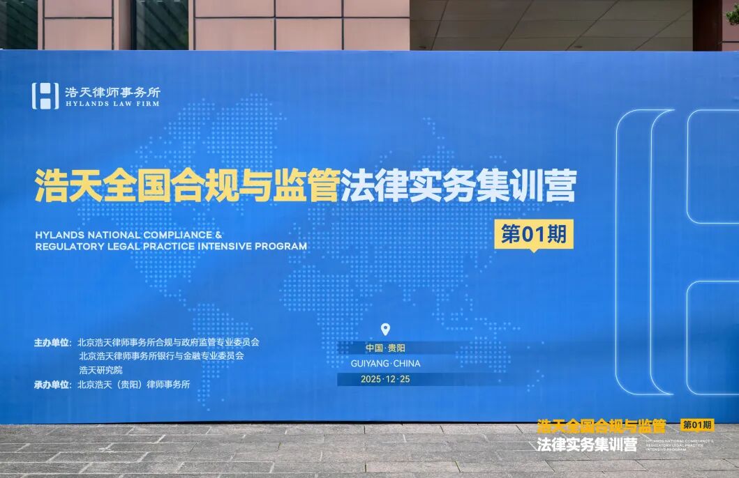 2025年12月25日至28日,由北京浩天律师事务所全国合规与政府监管专业委员会、银行与金融专业委员会、浩天研究院主办,北京浩天(贵阳)律师事务所承办的“浩天全国合规与监管法律实务集训营(第一期)”在贵州大学西校区顺利举办。本次集训营以“聚焦真实问题,交付实用工具”的务实态度为举办原则,围绕政府监管、金融合规、环保与安全合规、劳动关系合规及企业合规体系建设等核心议题,通过产品发布、主题授课、案例研讨与互动对话等形式,为来自浩天全国办公室的律师搭建了一个高密度、深交互的学习平台。