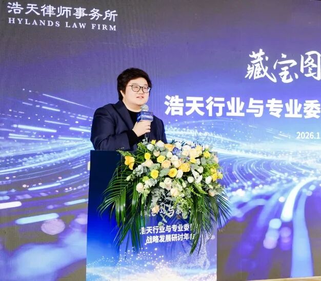 知识产权专业委员会周汉律师分享了专委会在承前启后中的思考、实践与未来蓝图。周汉律师介绍,过去一年,知识产权专业委员会通过重启“大知产”专业窗口、以主题特刊等形式强化浩天品牌发声、优化内部评奖机制等方式夯实基础,增进协同。2026年,委员会将聚焦市场热点,持续巩固专业输出,计划战略性拓展与顶尖艺术、体育类院校的公益合作与课程开发,积极融入行业生态圈,提升浩天在垂直领域的影响力。