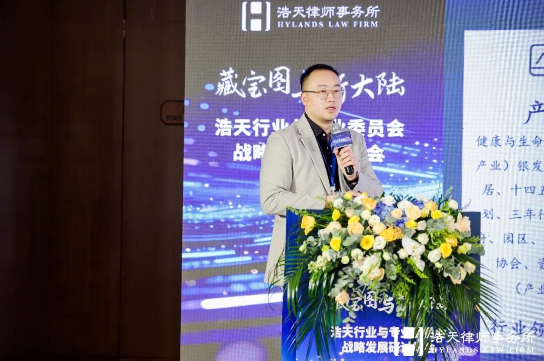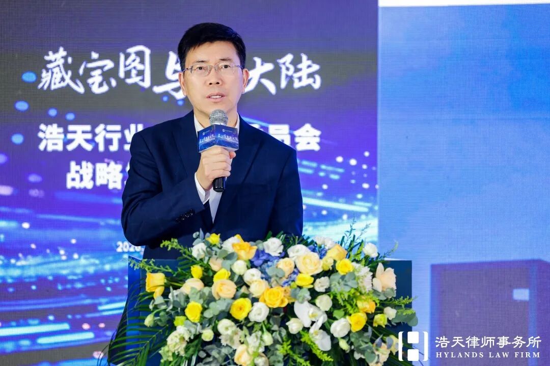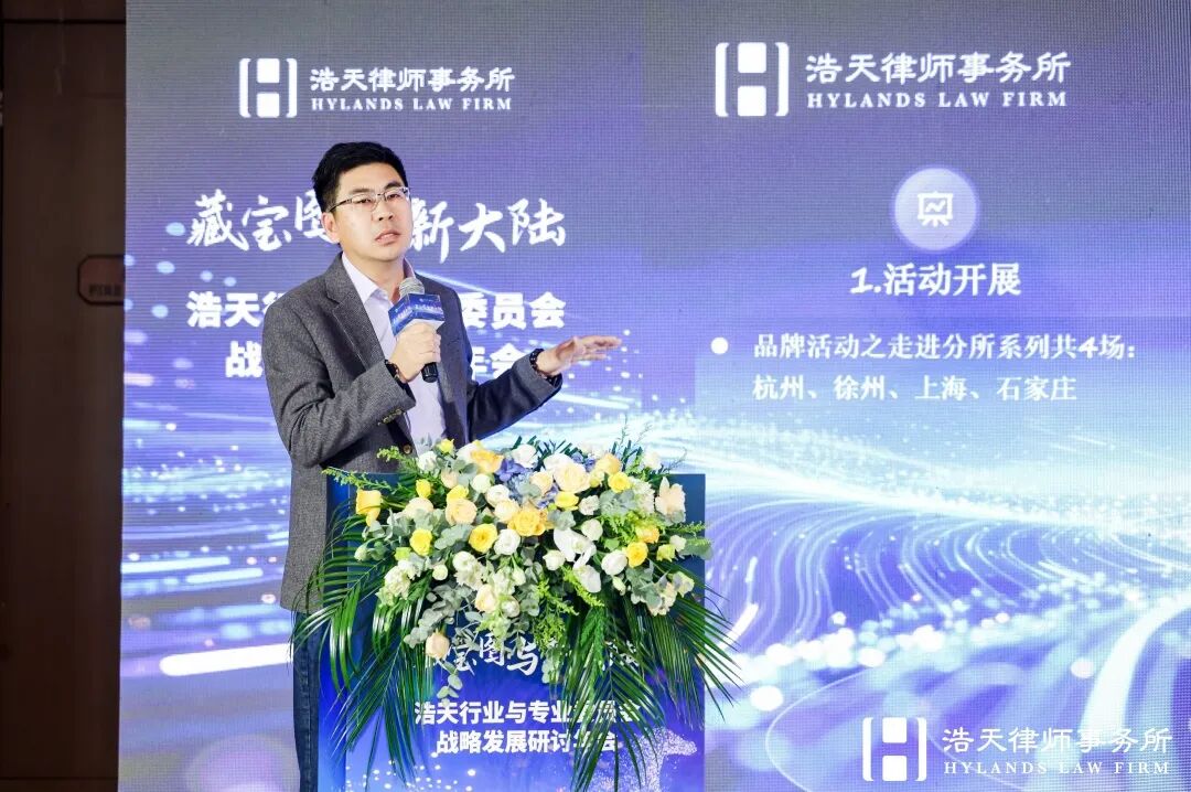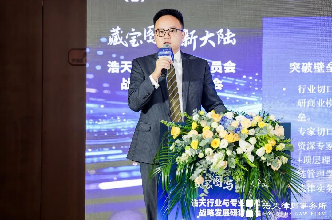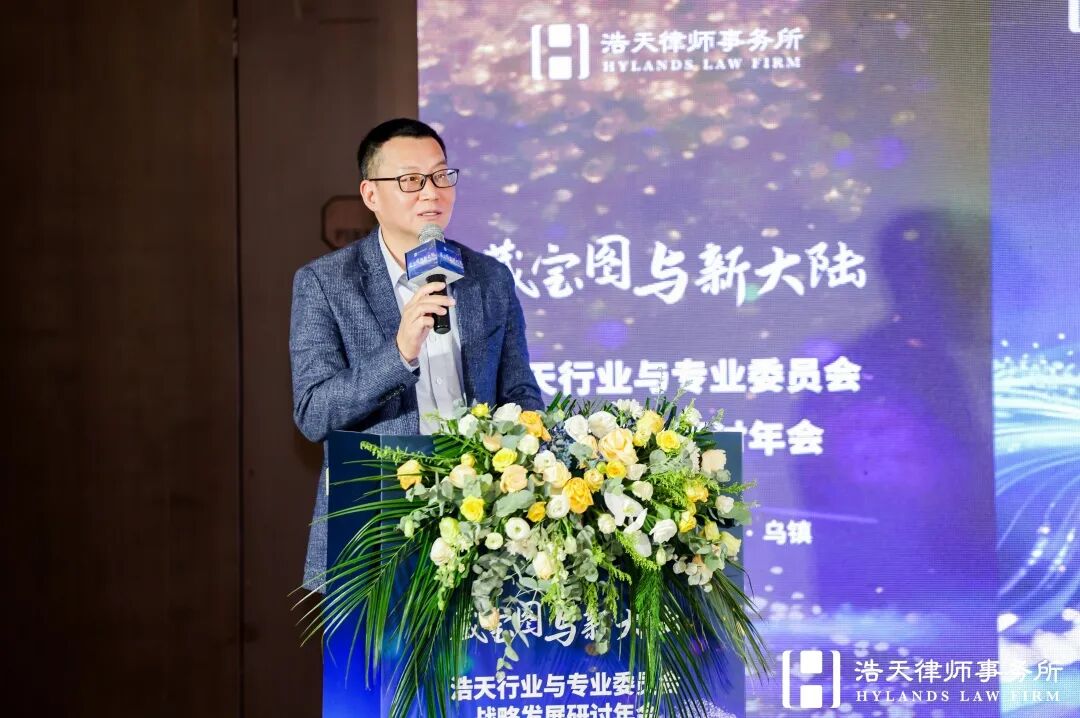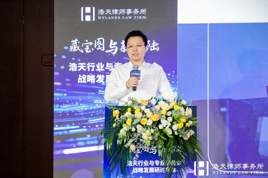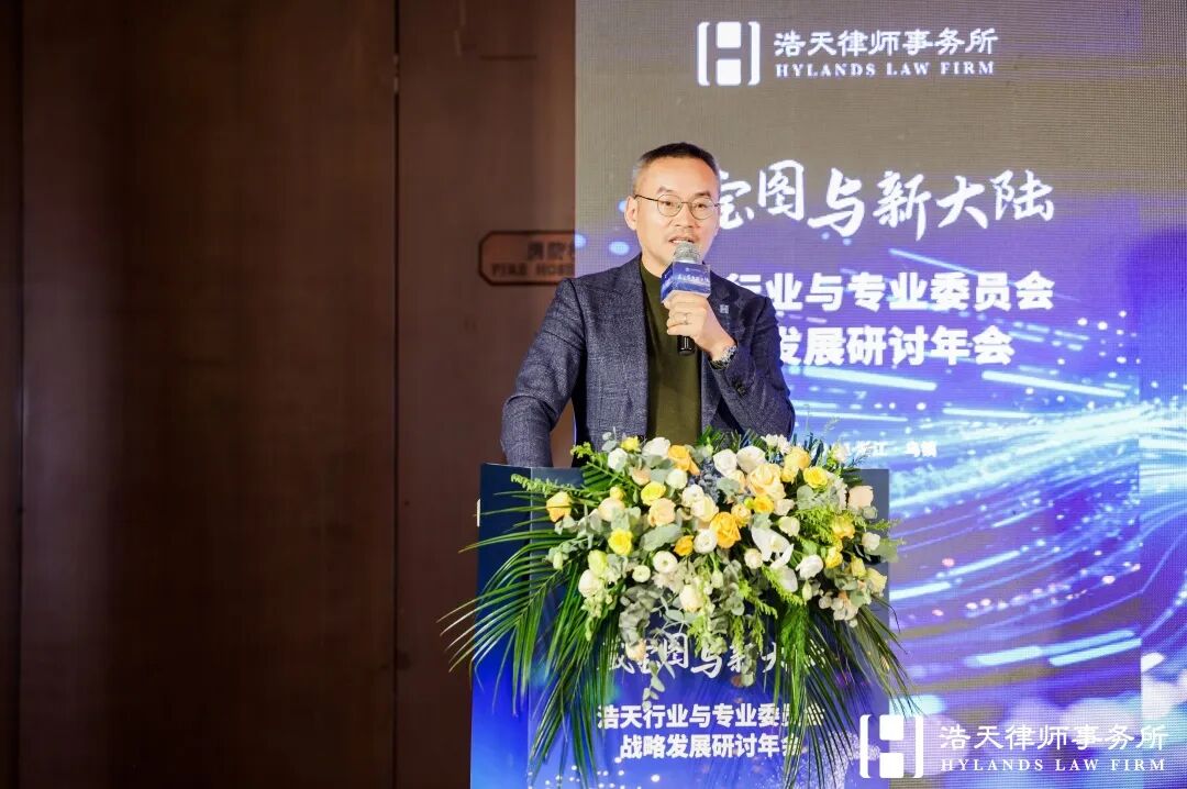 随后,浩天研究院院长赵润众展示了在过去一年研究院在服务全国各个办公室中做出的探索和实践,再次向浩天同仁阐述研究院“浩天飞轮”运营模型、产品作品融合思路、“七彩祥云”视觉体系,并深度解读了“十五五”规划的内涵逻辑,倡议以专业内容为基、线下活动为链、客户洞察为本,系统化推动知识价值转化,前瞻性布局新能源、人工智能、半导体等政策重点领域,在新兴赛道抢占法律服务先机。