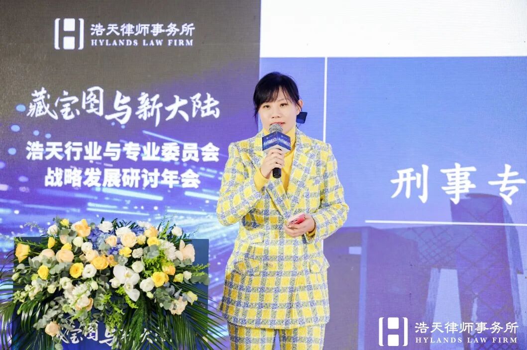 能源与自然资源行业委员会赵阳律师从国家能源安全与绿色转型的战略高度出发,强调专业委员会必须成为行业委员会的深度支撑。她以“电力交易合规”等具体场景为例,倡导建立“小而专”的协同模式,旨在构建覆盖关键资源的全域法律服务能力,为国家能源战略提供浩天方案。