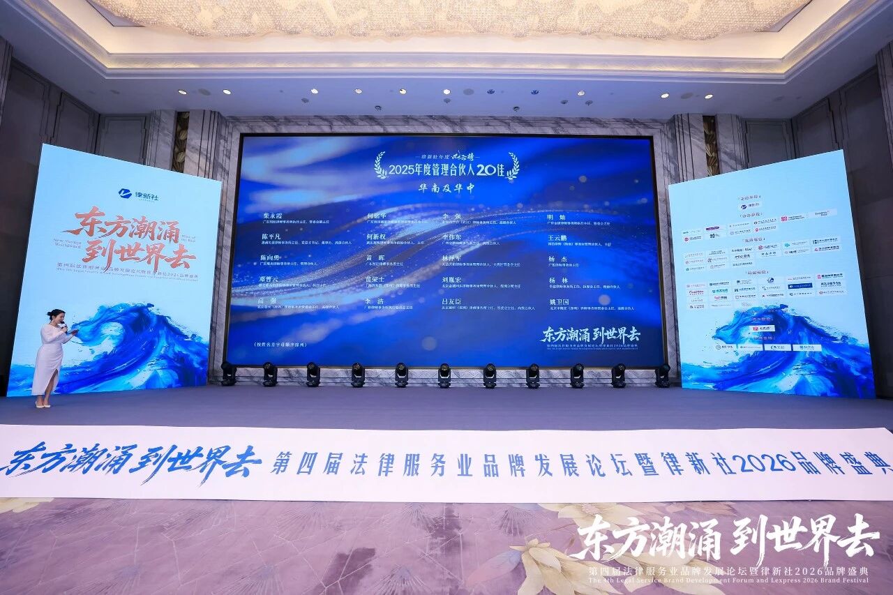 2026年3月13日至14日,“东方潮涌 到世界去”第四届法律服务业品牌发展论坛暨律新社2026品牌盛典在上海盛大举行。盛典现场律新社《律所卓越品牌影响力指南(2025)》十项律所大奖正式揭晓,“律新社2025年度风云榜:律界年度人物大奖”系列也同步亮相。