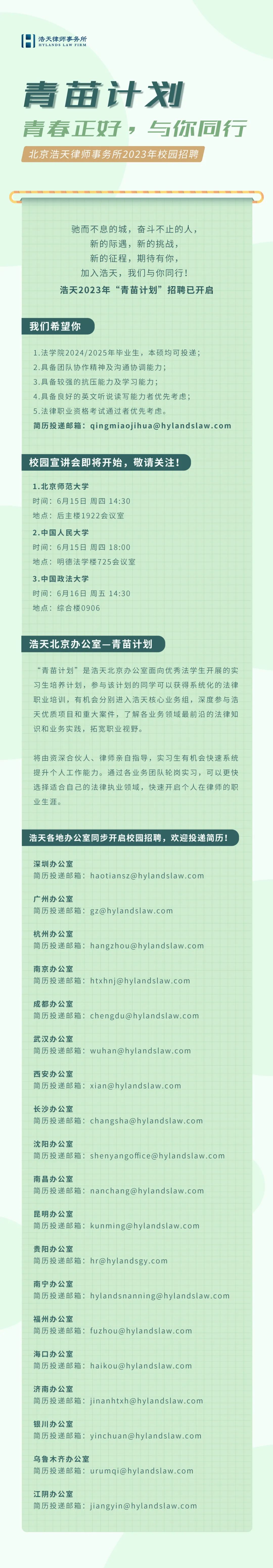 北京浩天律师事务所2023年校园招聘