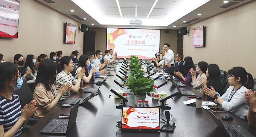 6月12日,浩天律师事务所全国合伙人代表大会主席朱征夫律师受广东粤财信托有限公司党委、团支部邀请,与青年骨干们面对面交流,围绕“为人民议政”开展一场别开生面的思政课堂。