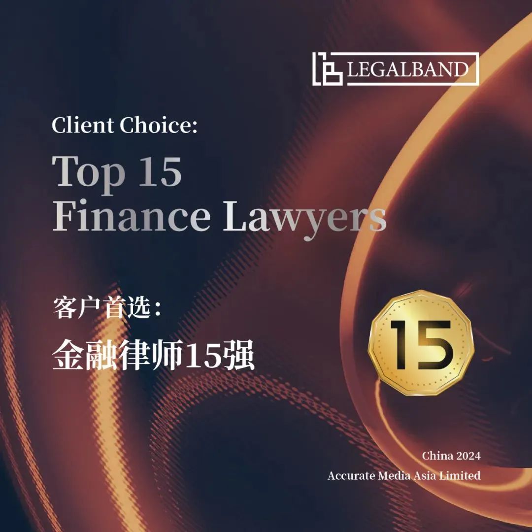 LEGALBAND是国际媒体公司Accurate Media旗下的专业法律评级机构,总部位于香港,在中国大陆拥有驻地调研团队。本次评选,LEGALBAND重点参考各大律所的推荐材料、律师自荐材料以及客户反馈信息等,同时结合LEGALBAND中国区驻地调研团队对金融行业的长期关注与洞察,最终选出15位中国大陆地区最受客户青睐的金融律师。