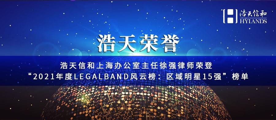 浩天信和上海办公室主任徐强律师荣登“2021年度LEGALBAND风云榜:区域明星15强”榜单