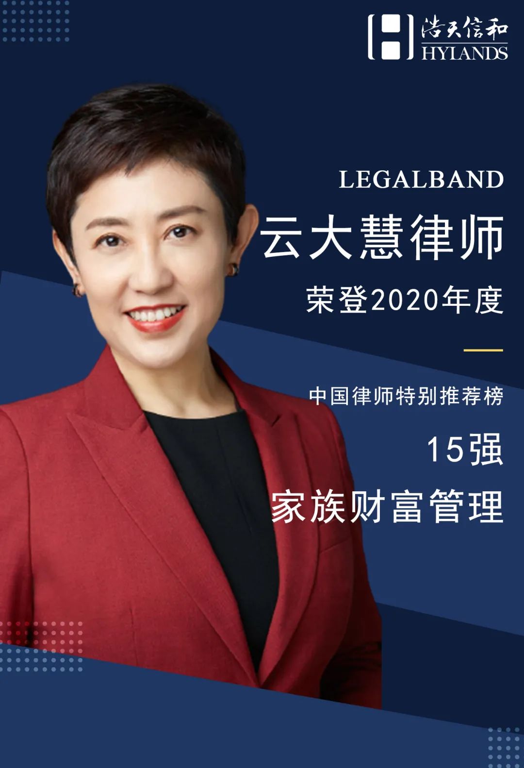 浩天信和合伙人云大慧律师荣登《2020年度LEGALBAND中国律师特别推荐榜15强:家族财富管理》榜单