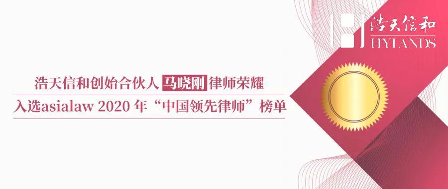 浩天信和创始合伙人马晓刚律师荣耀入选asialaw 2020 年“中国领先律师”榜单
