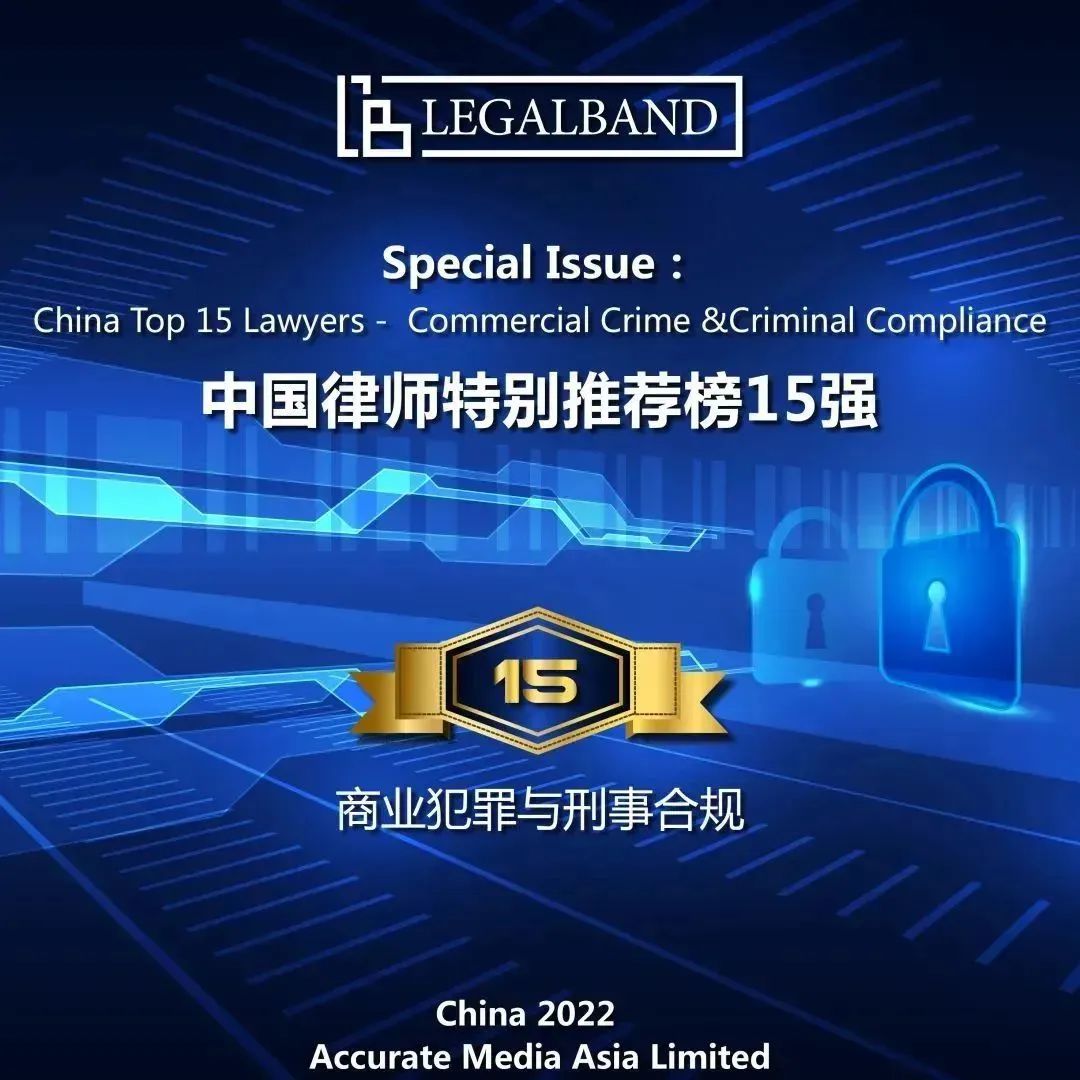 LEGALBAND是国际媒体公司Accurate Media旗下的专业法律评级机构,总部位于香港,在中国大陆拥有驻地调研团队。本次评选,LEGALBAND重点参考了各大律所的推荐材料、律师自荐材料以及客户反馈信息等,同时结合其中国区驻地调研团队对商业犯罪、刑事合规领域的长期关注与洞察,最终选出15位中国大陆地区最值得推荐事务“商业犯罪与刑事合规律师”。