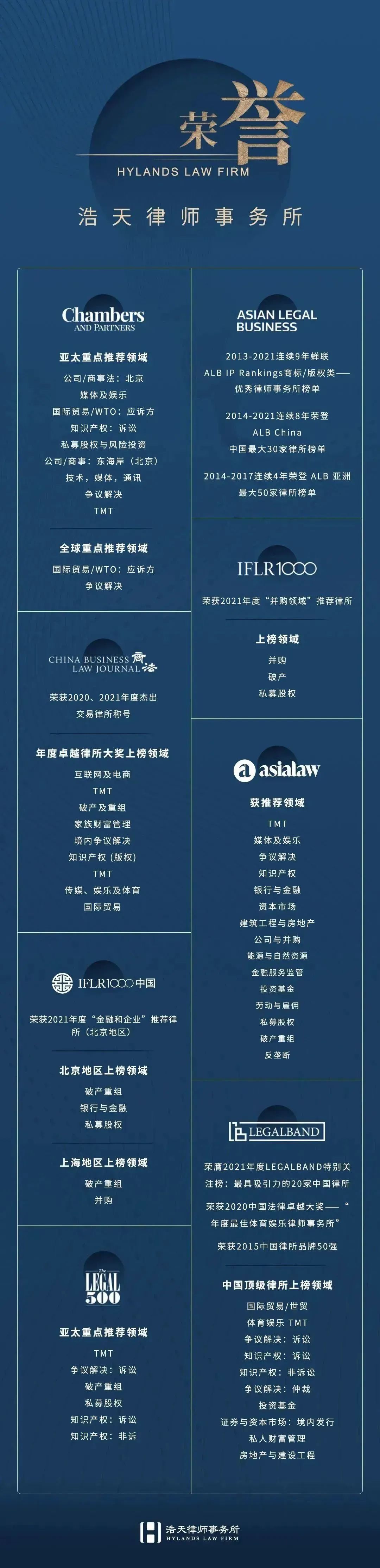 浩天合伙人田劼律师荣膺“2022年度LEGALBAND中国律师特别推荐榜15强:商业犯罪与刑事合规”榜单