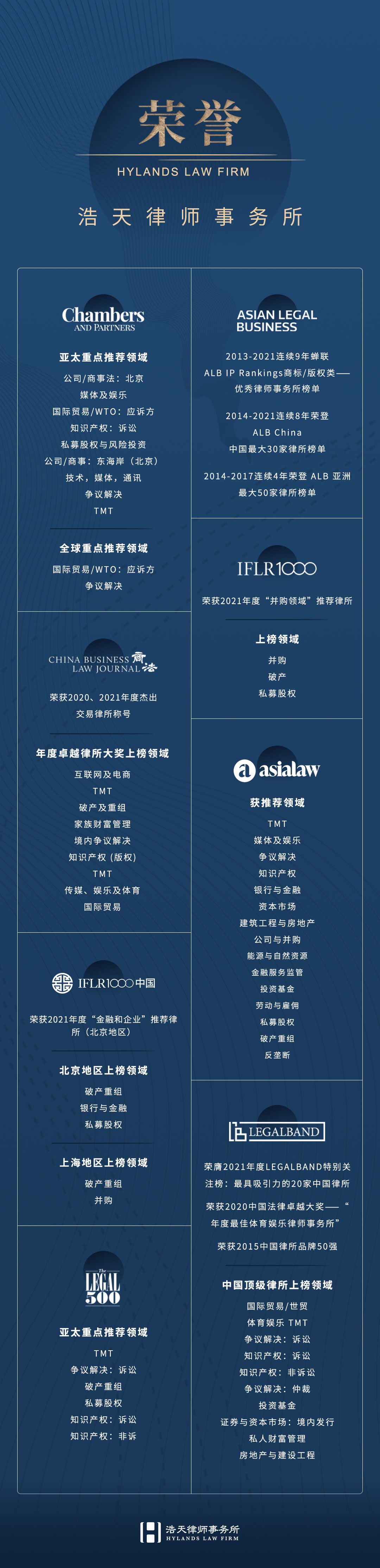 2023年5月8日,国际法律评级机构Benchmark Litigation公布了“2023年亚太地区争议解决榜单”,浩天律师事务所在商业与交易、知识产权领域获得推荐。