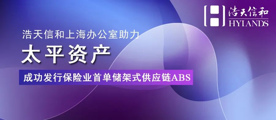 日前,浩天信和律师事务所上海办公室助力太平资产管理有限公司成功发行“太平-一方供应链资产支持计划1号1期”。该项目是保险行业首单储架式供应链ABS,注册规模50亿元。