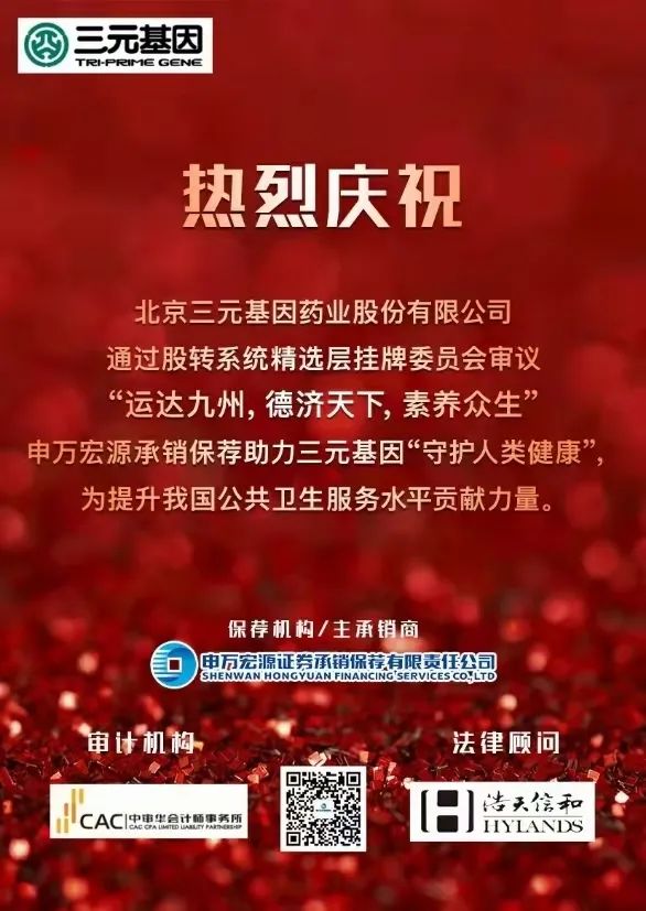 浩天信和助力三元基因通过股转系统精选层挂牌委员会审议
