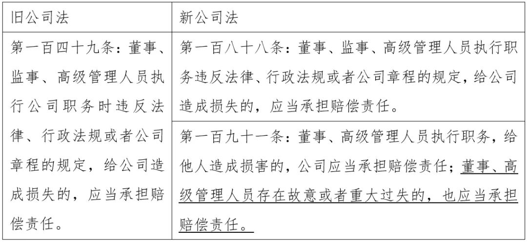 而新公司法不但规定了对内责任,也规定了对外责任,并直接规定了董事、高级管理人员直接对外承担责任的情形,至资管行业尤其需要引起董事、高级管理人员的重视。