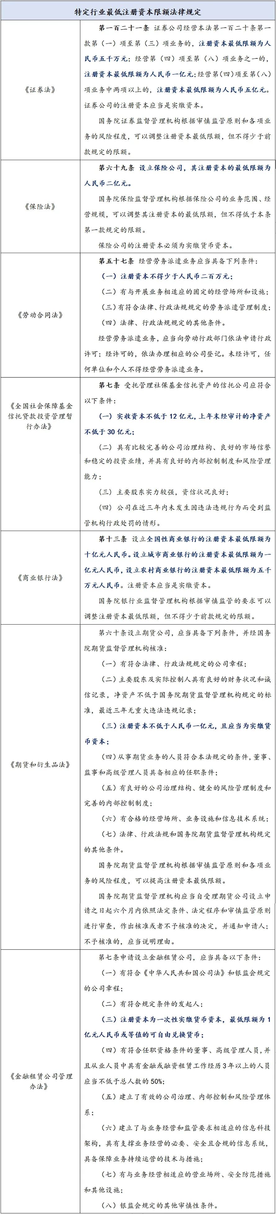 3.特定行业需要关注是否存在最低注册资本限额的规定