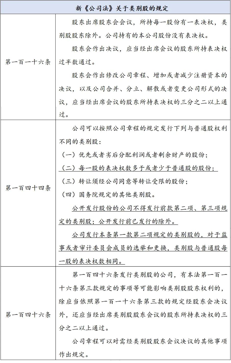 针对此类别股,新《公司法》进行了较为系统的规定,具体而言主要包括以下条款: