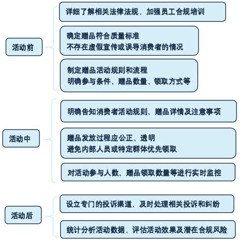 在以赠品活动方式进行品牌营销时,一方面需要达到吸引消费者的目的,另一方面更应关注其潜在的合规风险,否则活动效果可能与企业的设想南辕北辙。为帮助企业更为高效、规范地实施赠品活动,我们分析汇总了赠品活动中的高频风险点,从赠品的质量、价格标注的透明度以及合规风险的预防与监控等方面以图解方式对相关合规事项进行提示。